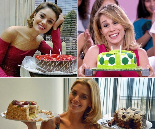 Nos estúdios das novelas Flor do Caribe, Guerra dos Sexos e Em Família, bolo, velinhas e muita festa